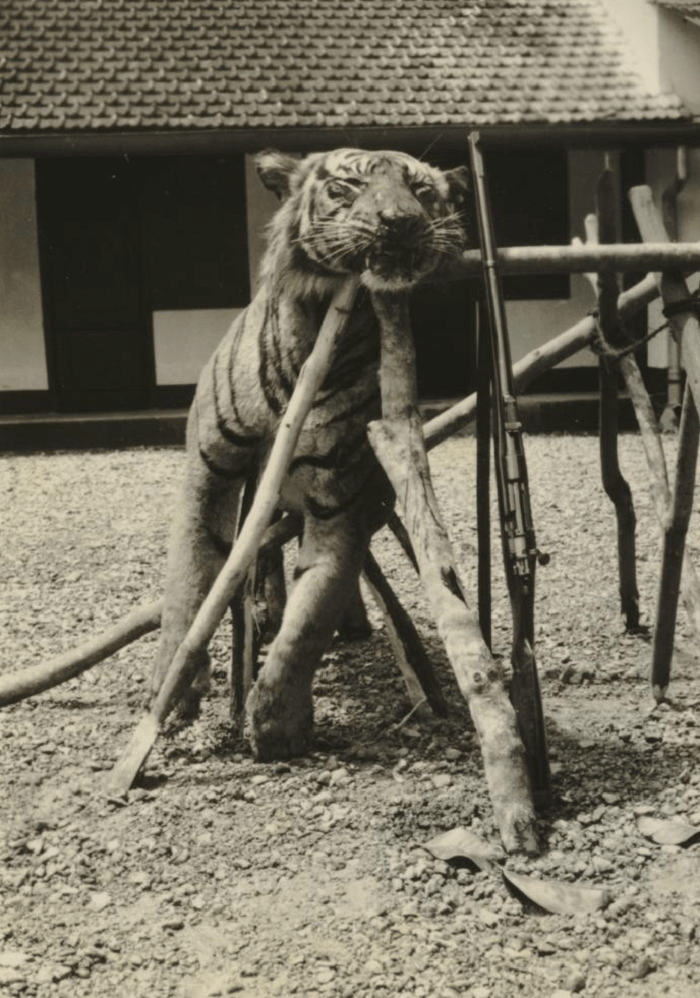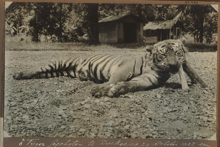 Dengan menggunakan senapan, kucing besar itu dikejar dan ditembak. Masa itu, hanya orang-orang Belanda yang memiliki senapan.
